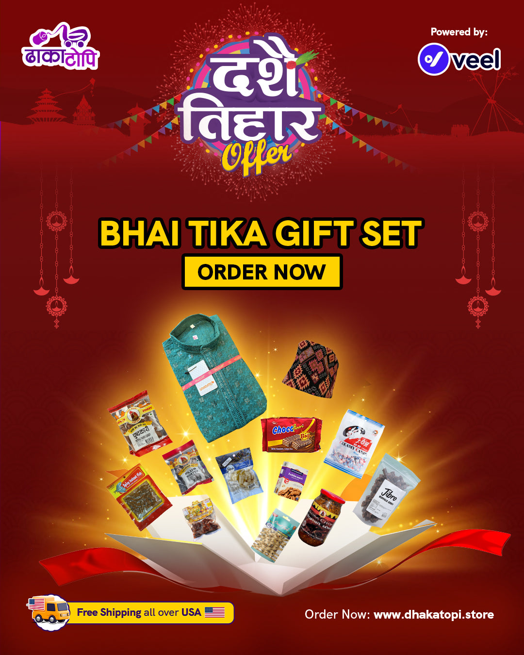 Celebrate the bond of love, blessings, and tradition this Tihar (Bhai Tika) with our exclusive Bhai Tika Gift Sets, beautifully curated by DhakaTopi Store USA 🇳🇵🎁